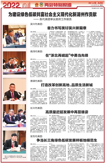 代表们认为,报告通篇贯穿了市委各项决策部署,无论在目标还是路径上,都与市第九次党代会精神高度契合、一脉相承。报告用六个“新湖州”的阐述,描绘了一幅更具实力、活力,更显品质、人文,更加美丽、幸福的新图景。报告提出要争当主力主角,推动湖州从长三角“地理C位”向“实力C位”迈进;同时,顺应共同富裕和“双碳”大背景,提出“争创绿色低碳共富示范市”,既详实全面、实事求是,也体现了“能快则快、应高尽高”的争先姿态。