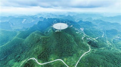 7月26日拍摄的“中国天眼”全景(维护保养期间无人机拍摄)。当日,国家重点研发计划“智能机器人”重点专项“重大科学基础设施FAST运行维护作业机器人系统”项目,在“中国天眼”通过现场验收,智能机器人为“中国天眼”提供运行维护保障。