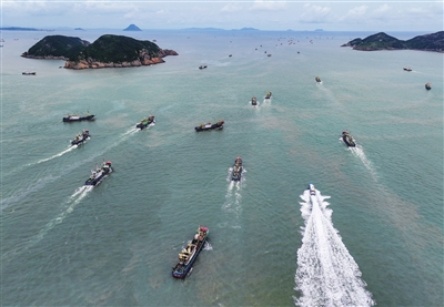 9月16日,渔船从浙江省温岭市石塘渔港出发,开赴渔场。9月16日中午12时,北纬35度至北纬26度30分之间的黄海和东海海域结束四个半月伏季休渔期。至此,2023年全国海洋伏季休渔期全面结束。新华社发(孙金标摄)