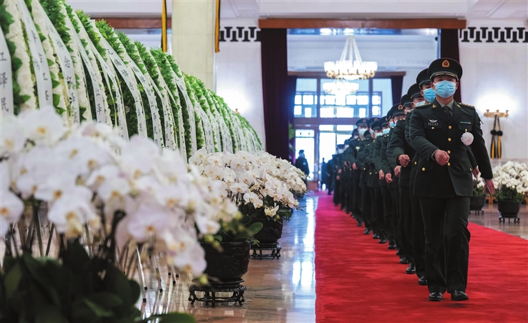12月6日上午,中共中央、全国人大常委会、国务院、全国政协、中央军委在北京人民大会堂隆重举行江泽民同志追悼大会。这是出席追悼大会的解放军代表步入人民大会堂大礼堂。