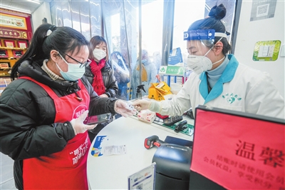 本报讯 “1份6粒,每人1份,请将这份说明书拍下照,回家后严格按照上面的要求服用,38.5℃以上才能使用,一般是大人每次2粒,小孩每次1粒,间隔6小时。”12月19日上午10时30分,在长兴县太湖街道的爱心医药龙溪御庭店,店员细心嘱咐着药品使用方法。“看到朋友圈有人发信息说有免费赠药所以来试试,很感谢老板的爱心帮助。”市民杭美芳说。