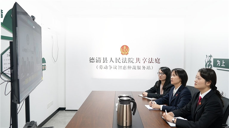“一根网线一块屏,在镇里就能连线法官和仲裁员,这样既提升基层调解中心的社会公信力,又让当事人便捷处置劳动纠纷,让案件在基层就能得到有效化解。”2022年11月17日,通过“共享法庭”劳动争议智惠仲裁服务站云端,德清法院在线联动多部门展开调解指导,顺利化解一起标的19.6万余元的集体欠薪案件,在全市首次实现劳动纠纷多部门异地联合调处。隔着电子屏,钟管镇劳动人事争议调解中心工作人员对这项便捷高效的新举措连连点赞。