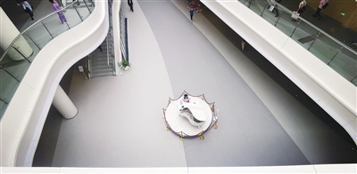 每天一大早,湖州市中心医院门诊大厅,患者和家属们脚步匆忙,寻医问诊。从楼层高处俯瞰,大厅中央的一架白色克拉克钢琴镶嵌在灰白两色地面,就像一幅素净的油画。