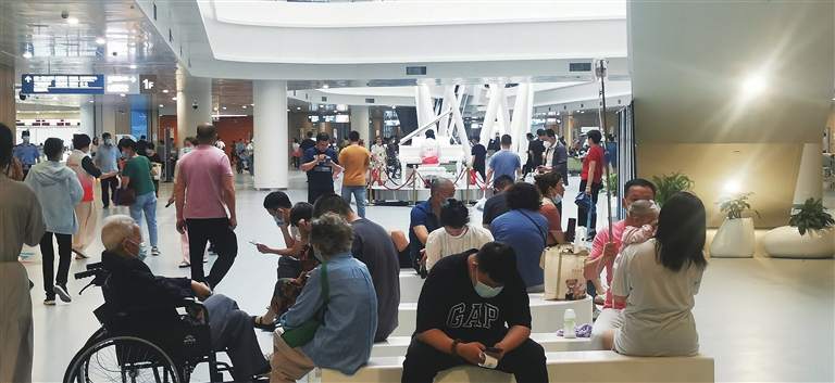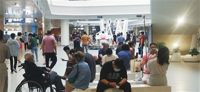 渐渐地,周围热闹起来了。一位家长带着孩子走近琴台,小女孩身着花裙伴着琴声开始起舞;另一位带着孩子的家长也停了下来,看着钱安娜和表演的小女孩;还有一对年轻的夫妇,举着吊瓶从输液室来到琴台;二楼的走廊,一位老人靠在轮椅里,安静地聆听楼下的演出。三楼,也有很多人探出了头,看着楼下的演奏者和听众……钱安娜的表演依旧,围拢的观众以及在等待中追寻琴音的患者,让琴台成为医院的焦点,许多人拿出手机,记录下看到的这幕温暖。