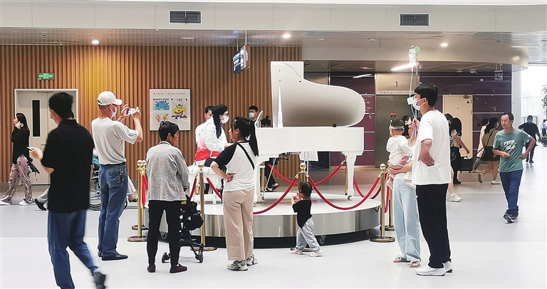 有人在这架钢琴旁驻足,拿出报告单看上一眼后又匆匆走开;疲倦的老人在琴台附近的椅子上休息,等待取药的子女;患病的儿童听到大人按下琴键,不再哭泣,似是止痛良药。