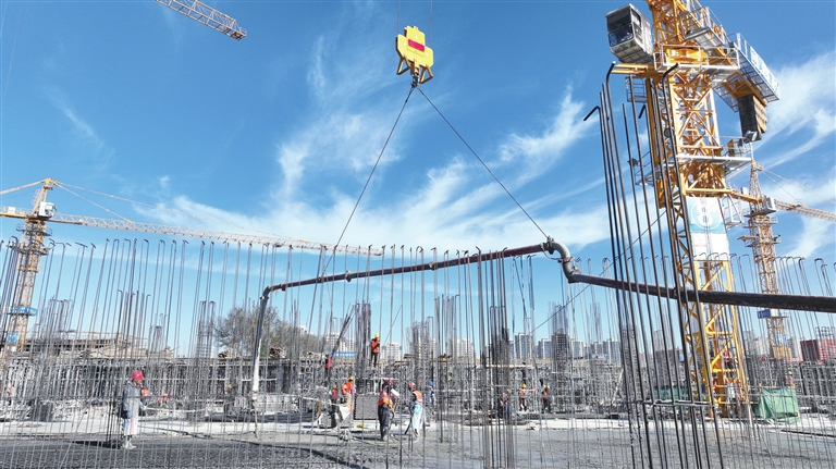 12月8日,工人在德清县地信小镇安置小区五期工地忙碌。作为该县重点民生工程,该项目总投资约22亿元,占地153亩,建设25幢居民楼及邻里中心,安置1373户村民。