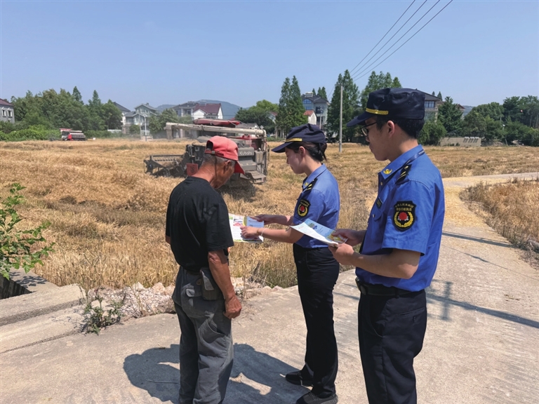 长兴县综合行政执法局以“执法+宣传”联动方式,开展粮食安全宣传活动,执法人员近日走进田间地头、粮食收购点和农贸市场,发放《粮食流通管理条例》等,向农户、商户细致解读粮食生产、收购、储存等环节的法律责任与义务,为百姓守好“粮袋子”。
