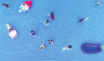 游客近日在德清县下渚湖奇幻谷景区戏水消暑,乐享夏日清凉。