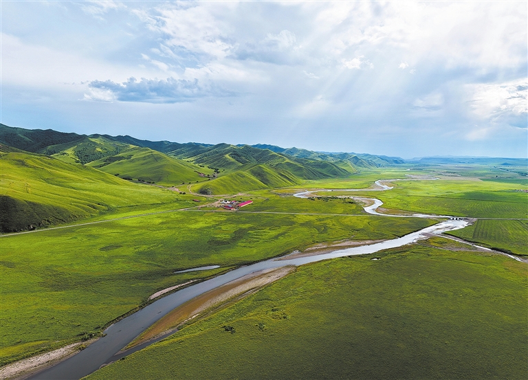 这是8月9日在内蒙古兴安盟科尔沁右翼前旗乌兰毛都草原上拍摄的乌兰河风光。时下,位于内蒙古兴安盟科尔沁右翼前旗的乌兰毛都草原生机勃勃,绿草成茵,吸引游客前来赏景游玩。 新华社记者 马金瑞 摄