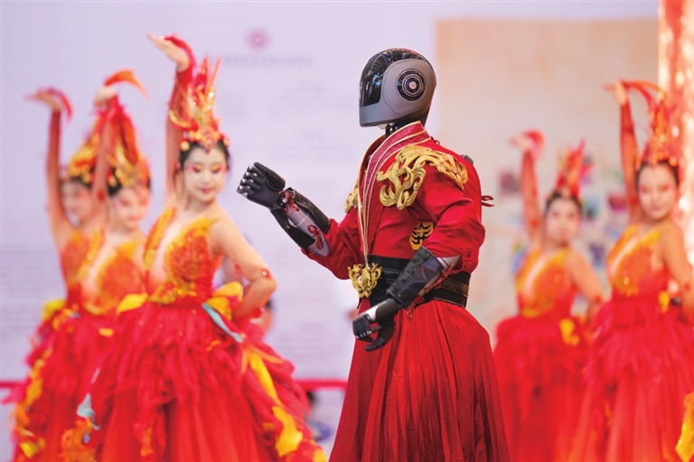 9月12日在2025中国文化旅游产业博览会上拍摄的人形机器人舞蹈表演。9月12日,2025中国文化旅游产业博览会在武汉开幕,本次博览会以“深化文旅融合 畅享美好生活”为主题,融合“展、演、销、游”四大功能,集中展现文旅新业态、新场景、新产品。
