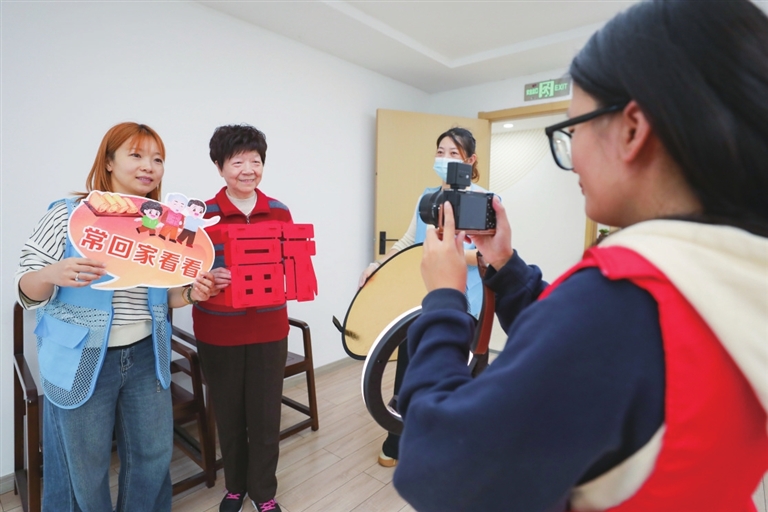 湖城湖东街道东柿社区近日开展爱心志愿暖心活动。志愿者为社区老年居民拍摄温馨合影,送上寓意长寿的面条,大家一起话家常,其乐融融,传递浓浓的邻里温情。