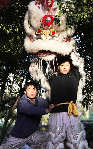 刘超杰(右)和陈文洁同是“00后”,一个任狮头,一个任狮尾。