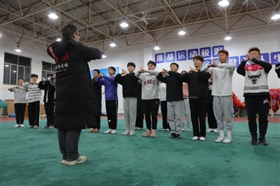 “00后”刘超杰,是湖州师范学院体育学院武术队舞狮团里的一名“狮头”。每周三、四晚上,他和队友们都会来到校体操馆,跟着师傅崔秉珍练习舞狮技巧。