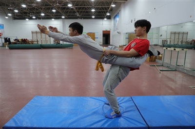 刘超杰与陈文洁课后加练,他们互相鼓励,彼此给予信心。