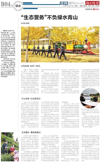 以防为主,全国首创“生态警长”护美碧水蓝天;以打为基,连续7年深入开展“守青山、护绿水”专项行动;以治为要,2021年站在更高起点部署推进“生态警务”建设,更是将护航生态文明工作向纵深推进。