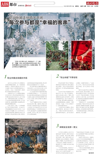 “在新人举行婚礼当天,伴娘相当于一个‘小管家’。”随着一对新人选定结婚的良辰吉日临近,职业伴娘陈露西(化名)也加紧与新人沟通婚礼事宜,“职业伴娘在这方面更有经验。”