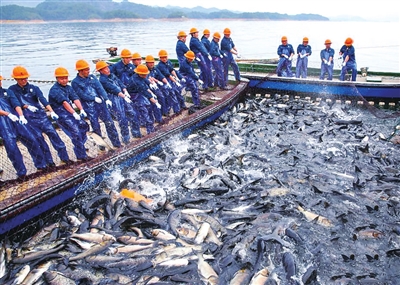 3月8日,随着千发集团捕捞一队队长叶志清一声令下,浙江千岛湖小金山水域的湖面上响起了嘹亮的捕鱼号子,千岛湖“巨网捕鱼”兔年第一网正式拉开帷幕。图为“巨网捕鱼”现场。据中新网