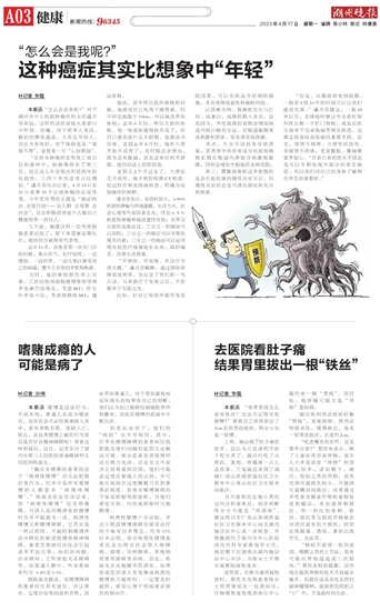 “在我市肿瘤好发和死亡前五位的癌种中,肠癌都排在了第三位,而且这几年呈现出明显的年轻化趋势,三四十岁的患者占比增加。”潘月芬告诉记者,4月15日至21日是第29个全国肿瘤防治宣传周。今年宣传周的主题是“癌症防治 全面行动——全人群 全周期 全社会”,旨在积极倡导每个人做自己健康的第一责任人。