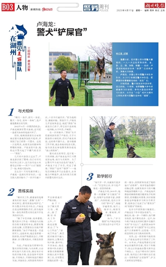 “除了辛苦训练、培养感情,警犬技术工作是一项理论与实践结合较为紧密的专业,既要有理论的支撑,又需要结合实践不断摸索感悟。”由于卢海龙是一名退役军人,这些年来,他总是带着一股拼劲,时刻严格要求自己,不断摸索、学习警犬技术,不断汲取营养。