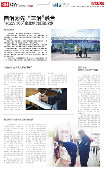 为了更好推动企业自治,每一家企业组建一支自治义警队伍。企业将品行端正、德高望重、有责任心、归属感强的员工组建为企业自治义警队伍,并将义警队伍全量纳入线上“平安之家”管理。