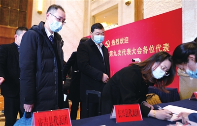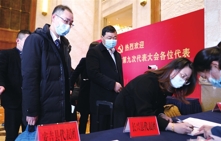 昨天下午,出席中国共产党湖州市第九次代表大会的400多名代表陆续抵达驻地报到。 记者 项飞 伊凡 摄
