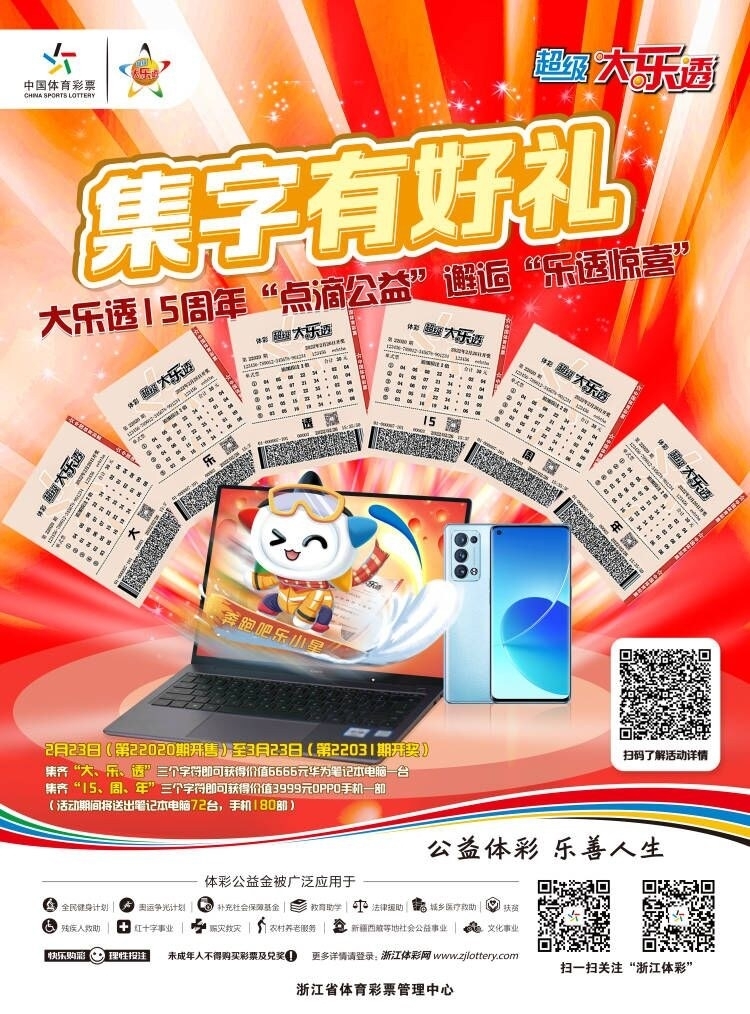 15年点滴公益,15年乐透惊喜!2月23日至3月23日,浙江体彩大乐透15周年“集字有礼”活动火热开启!