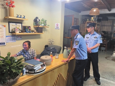 “正值夏季高温天气,民宿内厨房的燃气装置尤其需要提醒游客注意使用。”在“小瘾·半日村”的果酱民宿内灵峰派出所民警和“驻村巡防队”的队员们正在开展每周一次的乡宿全面“体检”。
