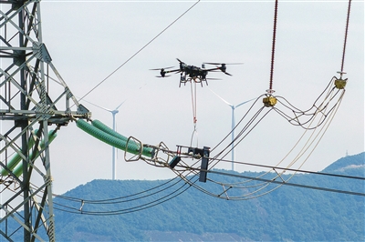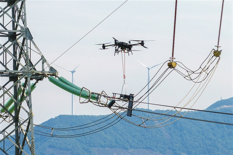 昨天,湖州市长兴县和平镇500千伏窑武5915线,国网湖州供电公司工作人员利用X射线探伤机器人检测输电线路。工作人员现场操控大载重无人机将X射线机器人携带至输电线路上。机器人多角度对线路进行检测,将图像实时回传到地面终端,以便工作人员判断是否存在缺陷。此次作业是适用于四分裂导线X光检测机器人在全国范围内的首轮次实战应用,降低人员登塔作业风险,工作效率提升3倍。