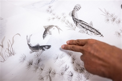 后来,村里人渐渐发现,这个整日与油漆打交道的老师傅,竟能画得一手好丹青。之后,大酒店高薪邀请他画墙画,潘建华非常欣喜,比起收入,他更在意的是“大家认可我的水平”。